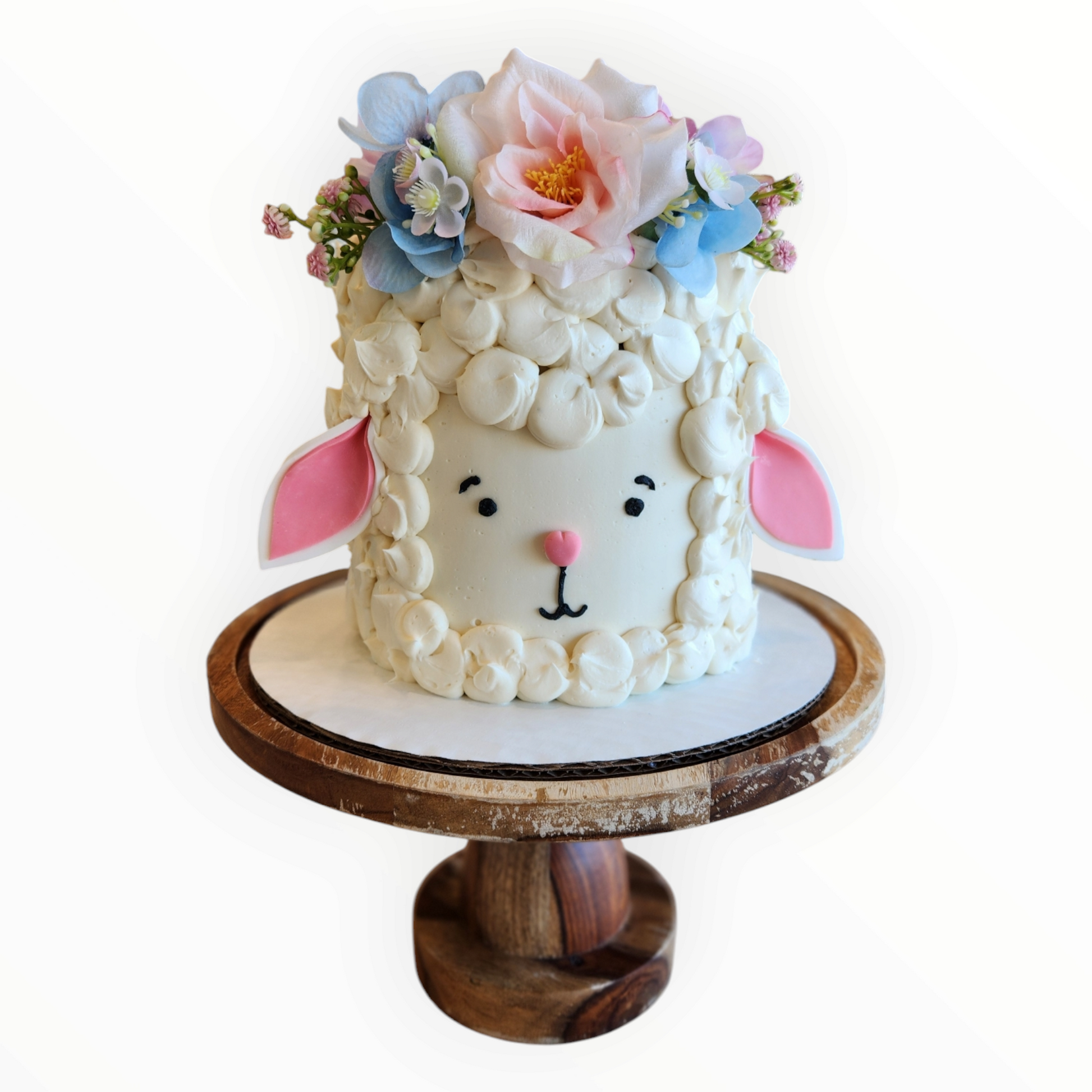 This irresistibly adorable sheep-shaped cake is as soft and sweet as its name. Covered in swirls of fluffy buttercream "wool" and topped with the friendliest little fondant face, Fluffernuffle is perfect for baby showers, birthdays, or anyone who loves a little whimsy with their dessert. One bite and you'll be head-over-hooves in love!