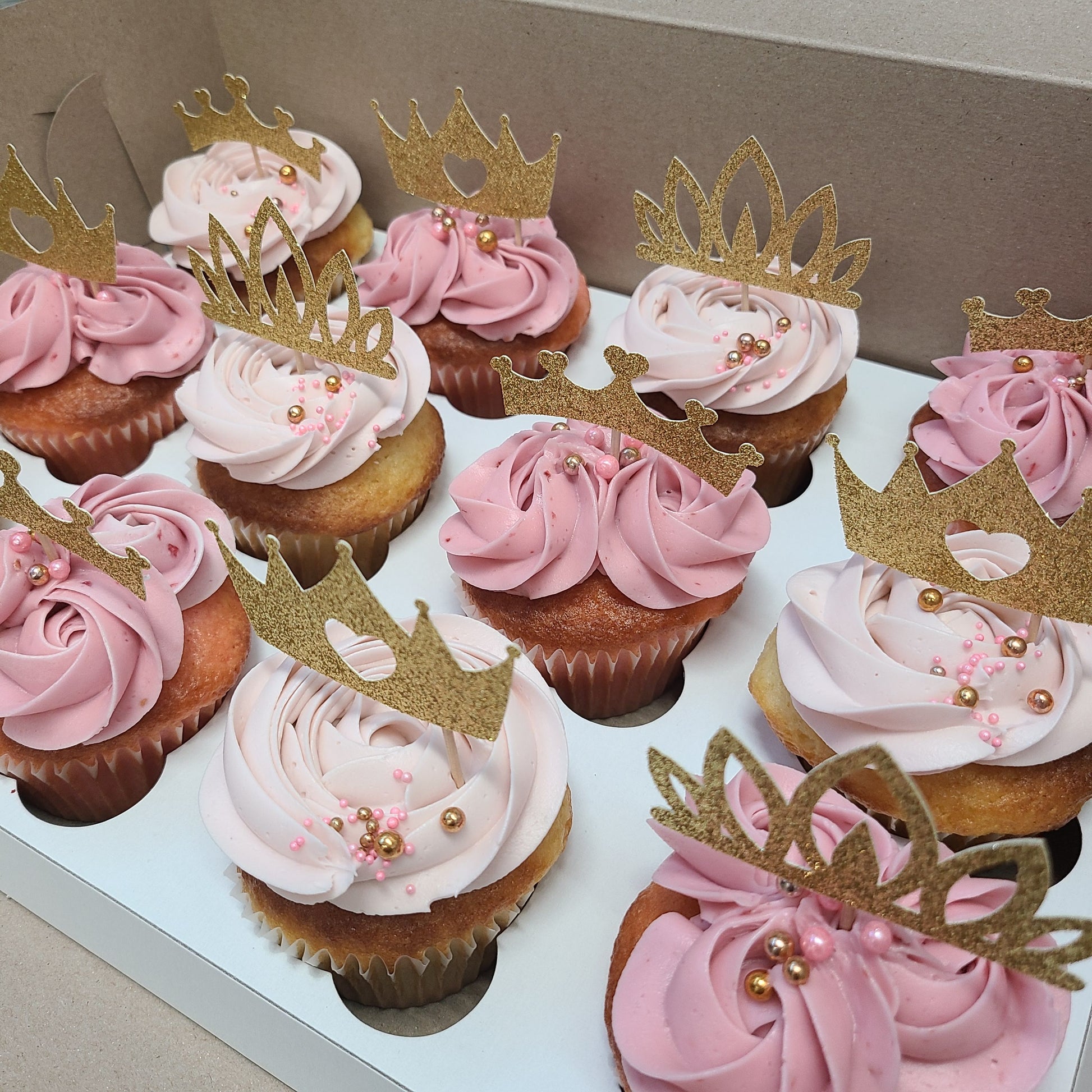 Shades of pink and gold sprinkles with a glitter cardstock crown topper