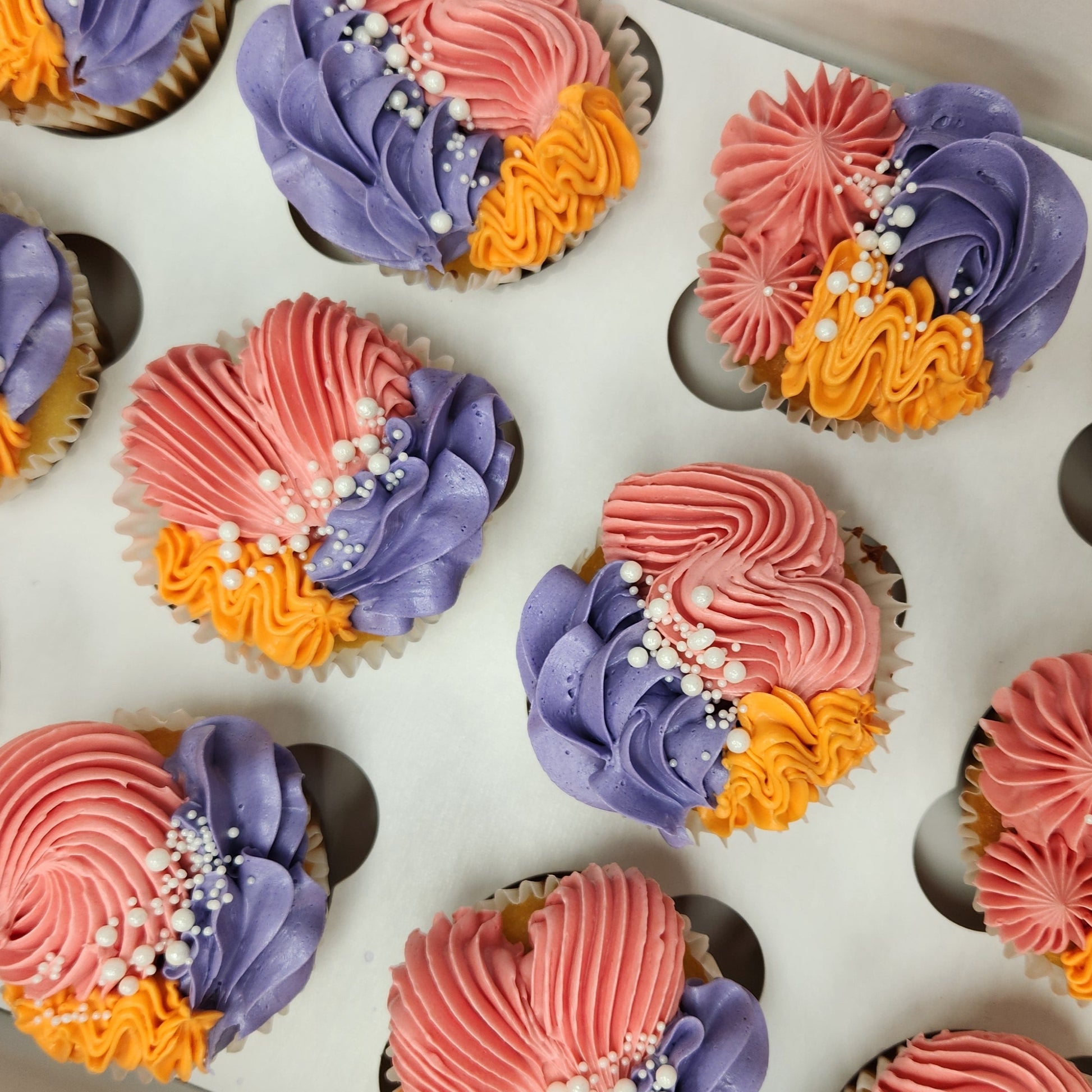Bold, bright, and bursting with personality — Retro Razzle brings serious throwback vibes with swirls of electric orange, purple, and pink. It’s a groovy little party in cupcake form, perfect for anyone who loves a splash of color and a whole lot of fun.