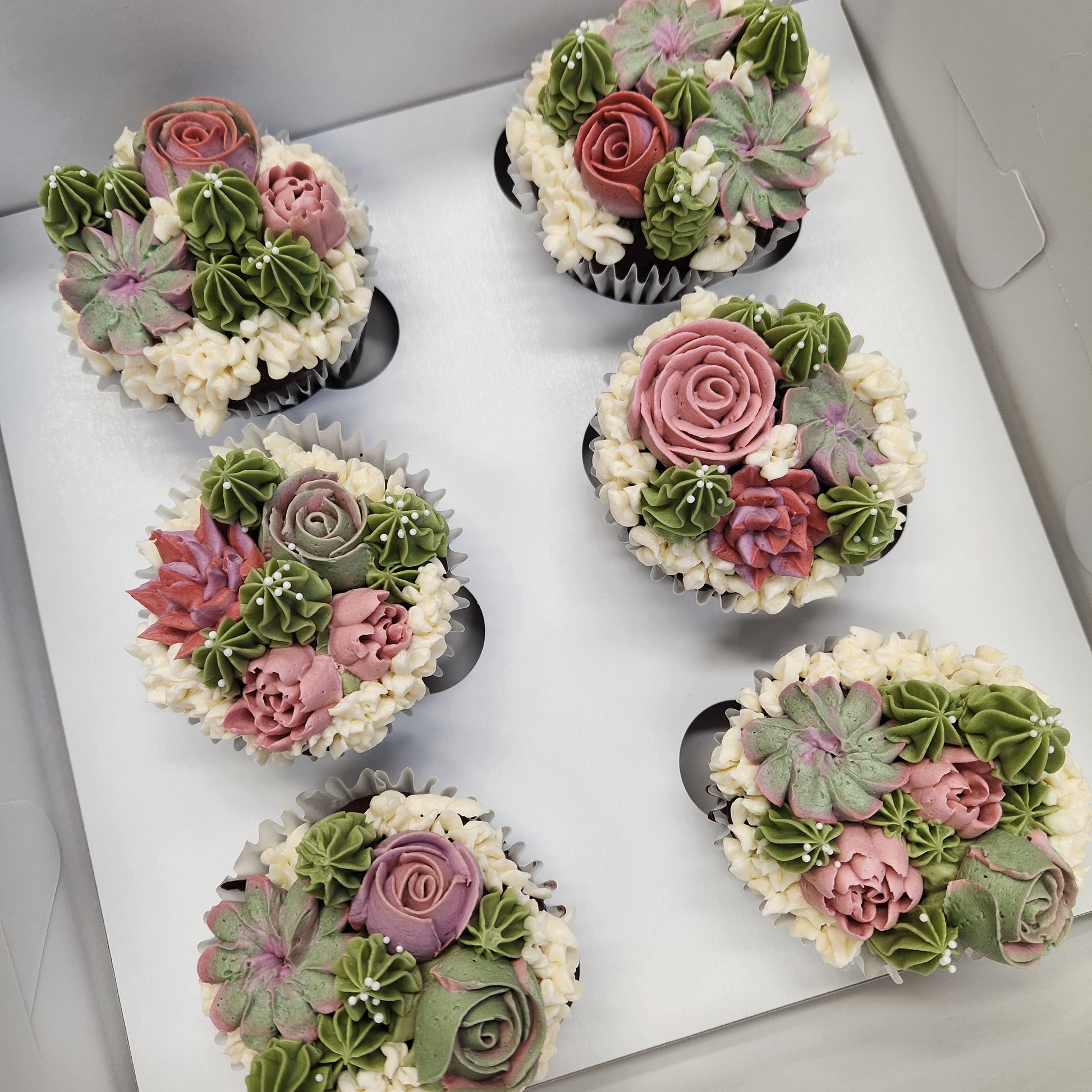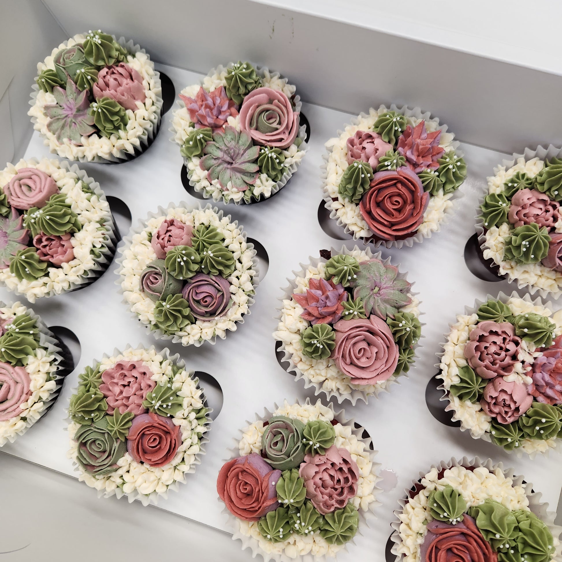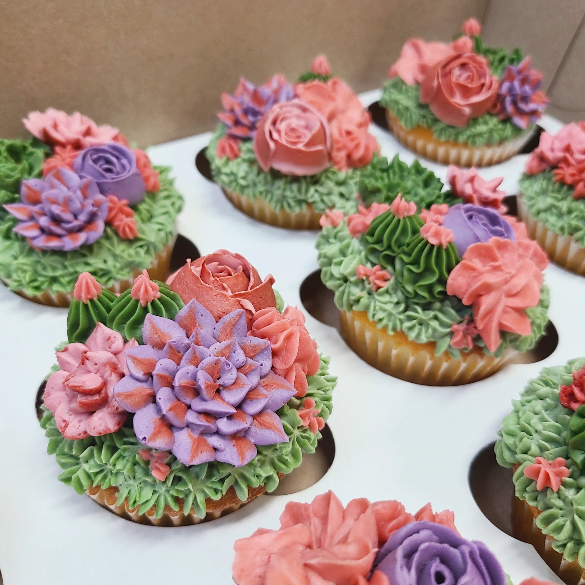 Handpiped succulent buttercream, in different textures and colors. The perfect gift for plant lovers!