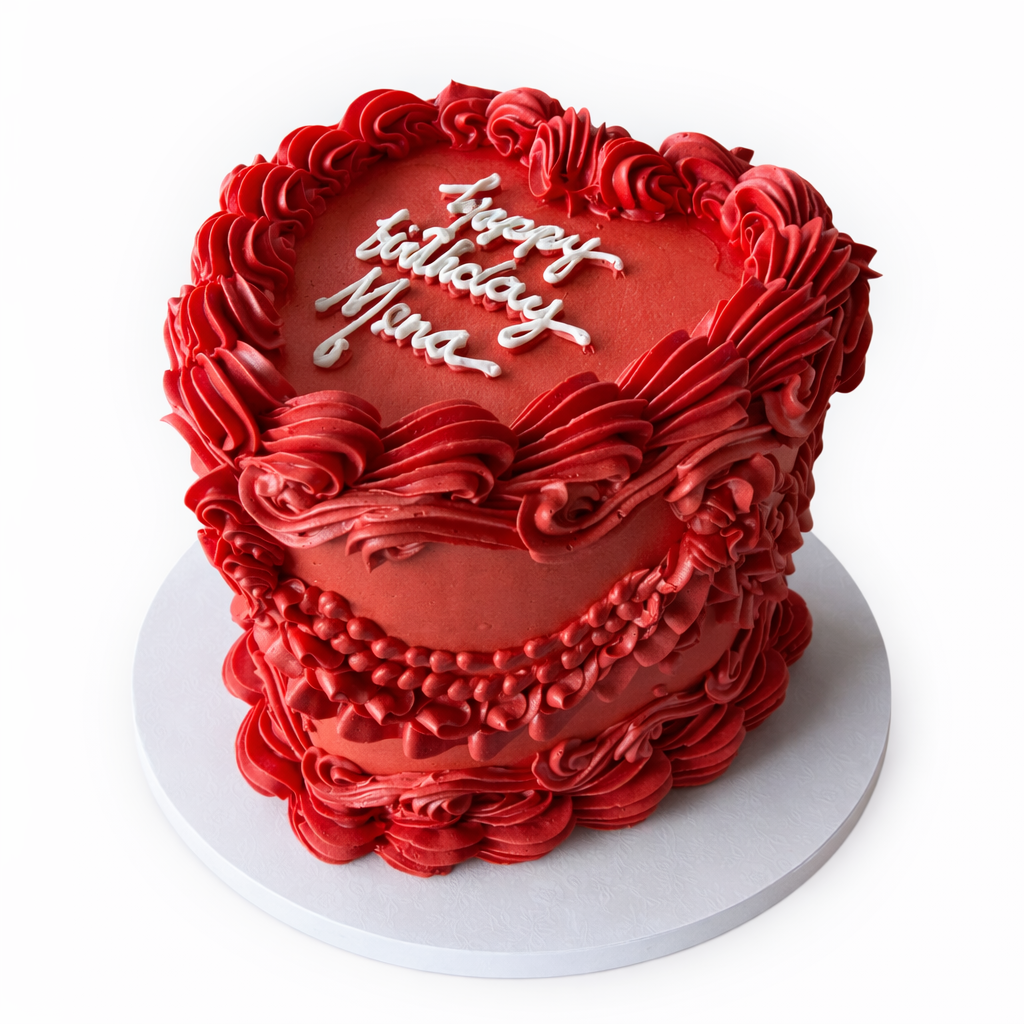 Elegant vintage style cake with beautiful patterns. Choice of round or heart shaped